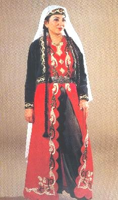 vêtue, portant en outre sur la tête