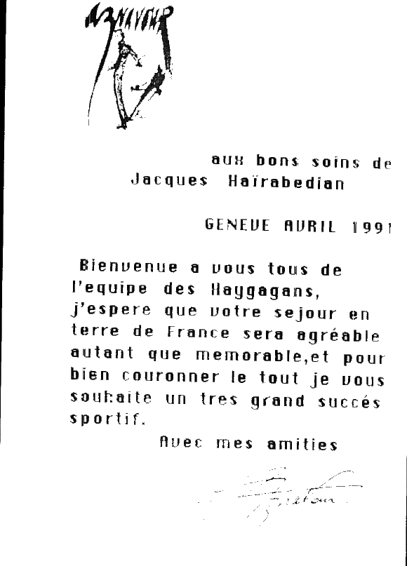auprès de cette équipe d’Arménie par le président de la F.F.B. :